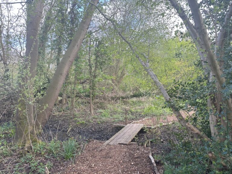 Sam’s Way – This has been the main focus of the volunteer team over approx. 6 weeks. Tremendous effort to clear fallen trees and debris, including all manner of fly tipping from sinks, to bicycles and car parts to wood, plastic and bricks. Having cleared a navigable route branches were cut and laid as path edging before filling in with bark chippings. A stepped approach to the walkway was built as well as a small bridge to deal with the waterlogging in the area that will stand us in good stead for when the winter rains come. We completed the project by planting numerous trees, plants as well as Snowdrops, Bluebells, and Daffs that we had recovered from hard to see areas on the Eastern footpath. Finally, why Sam’s Way? Our dedicated Volunteer team leader, Peter’s grandson Sam helped one day when his school was closed, so we decided to christen the new woodland walk Sam’s Way.